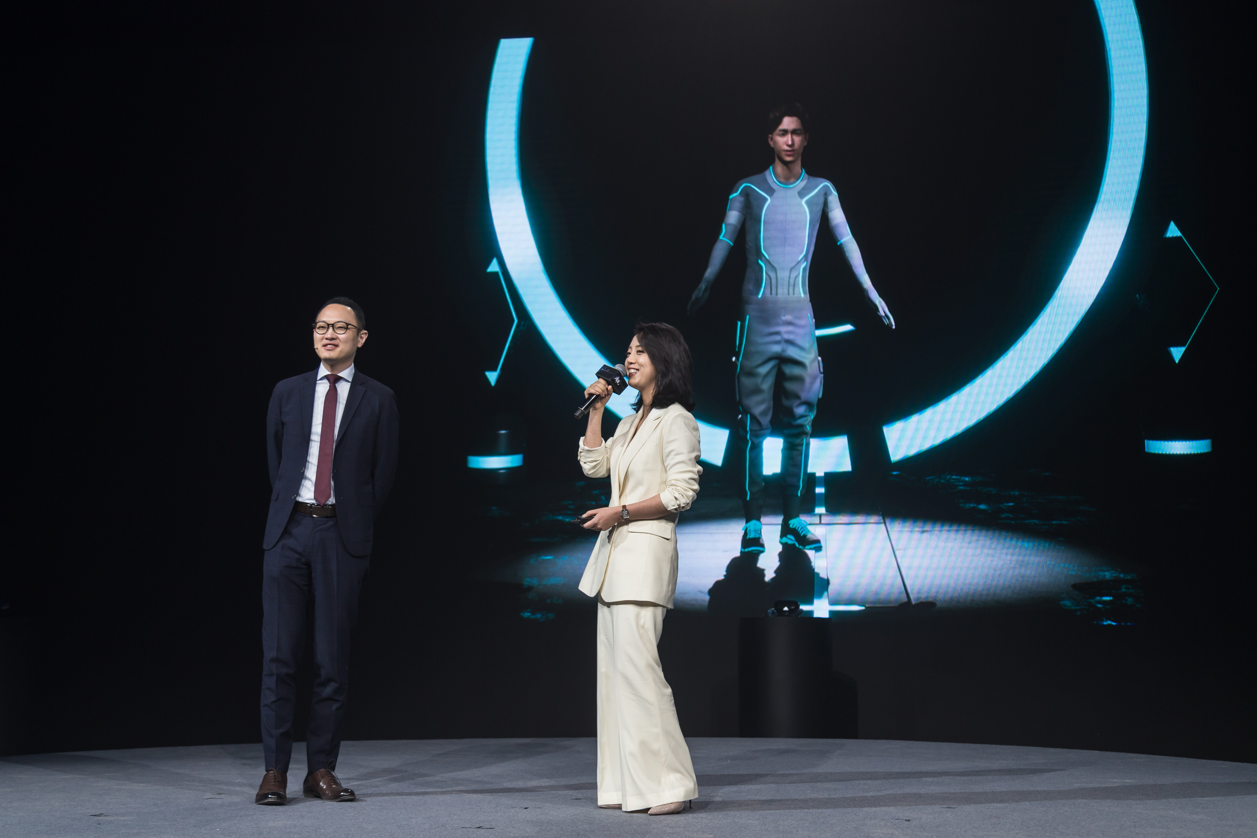M. Daniel Seah, directeur exécutif et chef dela direction de Digital Domain et Mme Jessie Wang, fondatrice et chef de la direction de3Glasses, ont annoncé que la « star » humaine virtuelle créée par Digital Domain, sera la porte-parole du nouveau produit 3Glasses appelé « X1 » lors de la conférence.
